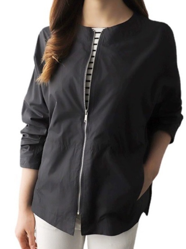 アウター ブルゾン 白 ネイビー 春 秋 無地 ラウンドネック 長袖 10代 20代 30代 お出かけ デート 通勤 OL 仕事 オフィス シンプル クール かっこいい トレンド 大人女子 カジュアル