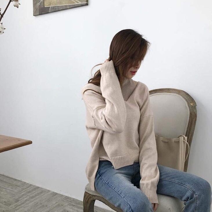 ノースリーブハイネックインナー 深Vネックニット ツーピース アンサンブル セット 0157