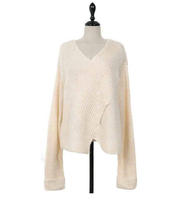 ●胸元がクロスデザインのオシャレなセーターです。シックで大人な雰囲気が素敵なゆったりした着心地の一品。
