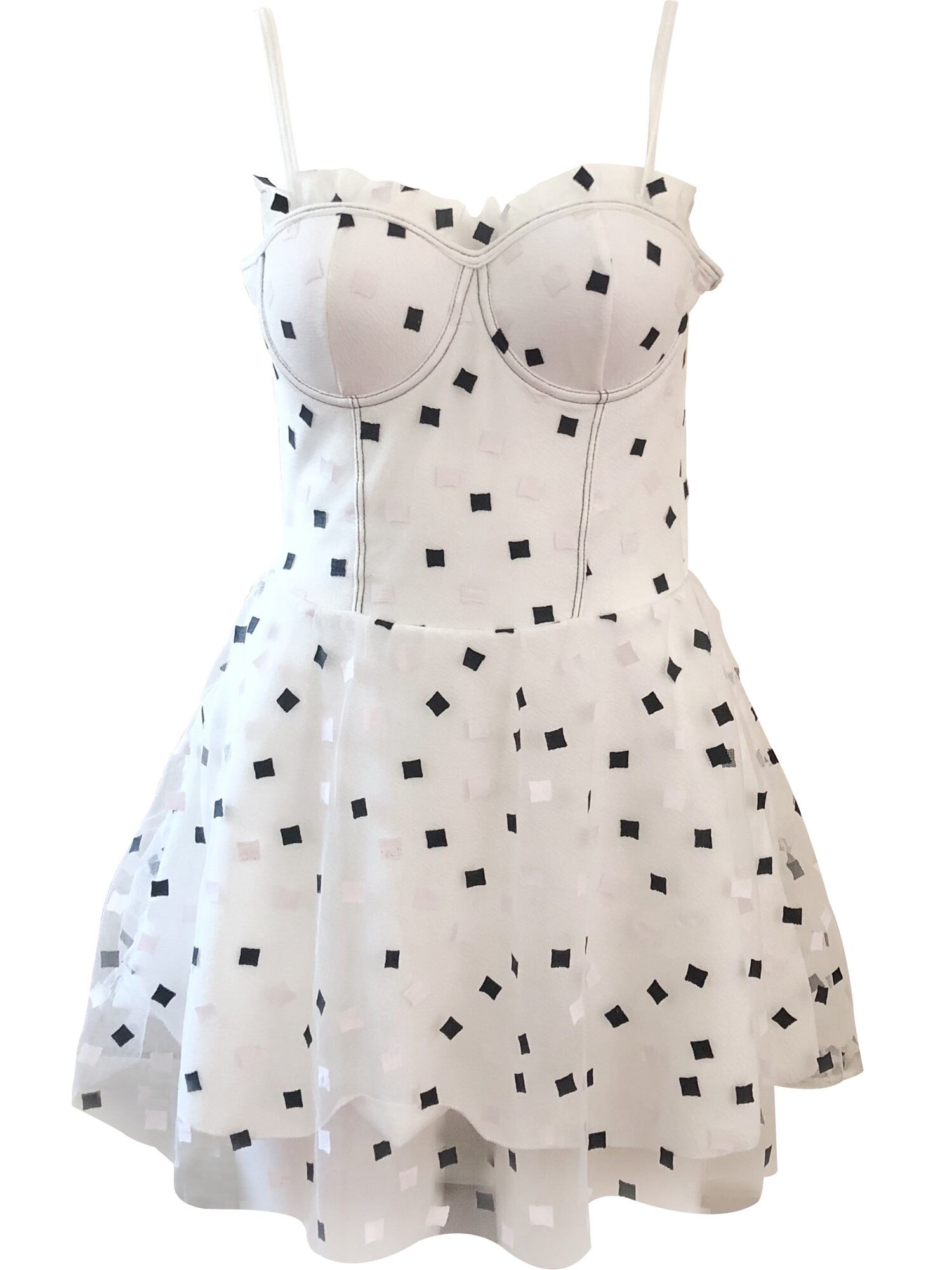 レースがキュートなフェアリーワンピース水着 フェミニン フリル フレア ミニ 編み上げ セクシー 大人可愛い ホワイト ブラック コルセット風 夏 海 プール リゾート レディース