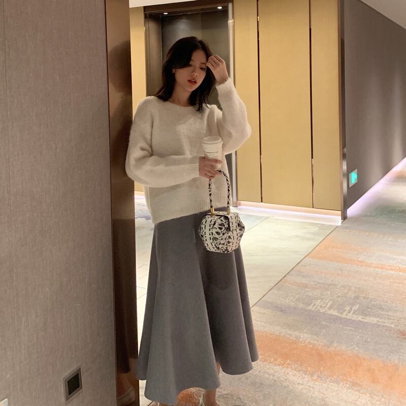●ゆったりとしたフレアスカート。膝丈とミディアム丈の2種類。シンプルで活用性◎のデザイン!