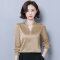 サテン シルク シャツ ブラウス Vネック 光沢 無地 ゴールドチェーン エレガント 大人 セクシー きれいめ シンプル お出かけ デート ショッピング パーティー オフィス 長袖 トップス 春 秋 レディース 女性