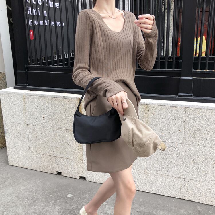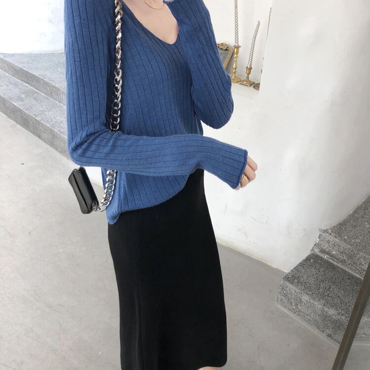 ●シンプルで活用性◎のセーター。深Vネックでセクシーさアップ!パンツにもスカートにも合わせやすいデザインです。