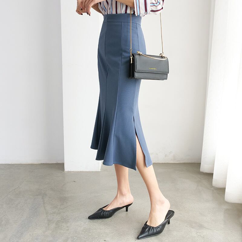 ミディアム丈 スカート フォーマル チューリップ型 マーメイド型 シンプル スリット サイドファスナー 大人 レトロ フレア シック 無地 オフィス 会議 参観 お出かけ ショッピング 春 秋 冬 ボトムス レディース 女性