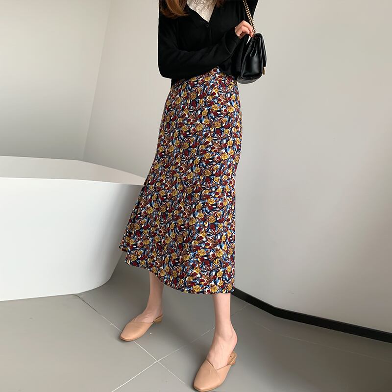 花柄 スカート フラワー ロング ミディアム丈 レトロ Aライン 大人可愛い ハイウエスト フレア ボトムス 春 秋 オフィス お出かけ デート ショッピング レディース 女性