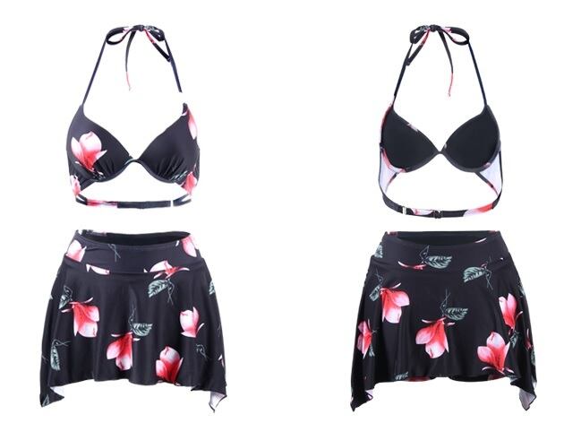 水着 タンキニ ホルターネックビキニ Vネック 半袖 フリル 透け感 セット レディース 夏 花柄 黒 リゾート 海 ビーチ 温泉 プール 水泳 海水浴 バカンス ジム スポーツ 日焼け防止 UV対策 大人可愛い キュート セクシー トレンド 10代 20代 30代