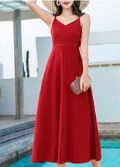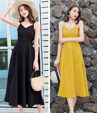 キャミソールワンピース ミモレ丈 ノースリーブ 大きいサイズ ゆったり Aライン フレア 背中開き リボン 大人可愛い 春夏 トレンド 黒 レッド ピンク イエロー 10代 20代 30代 お出かけ デート カジュアル セクシー キュート