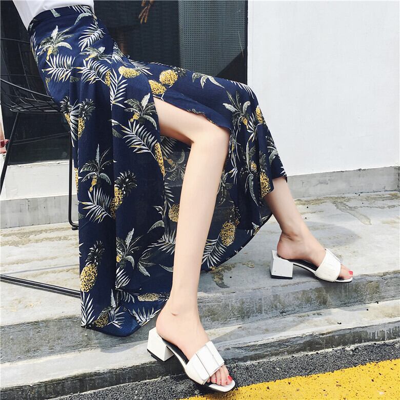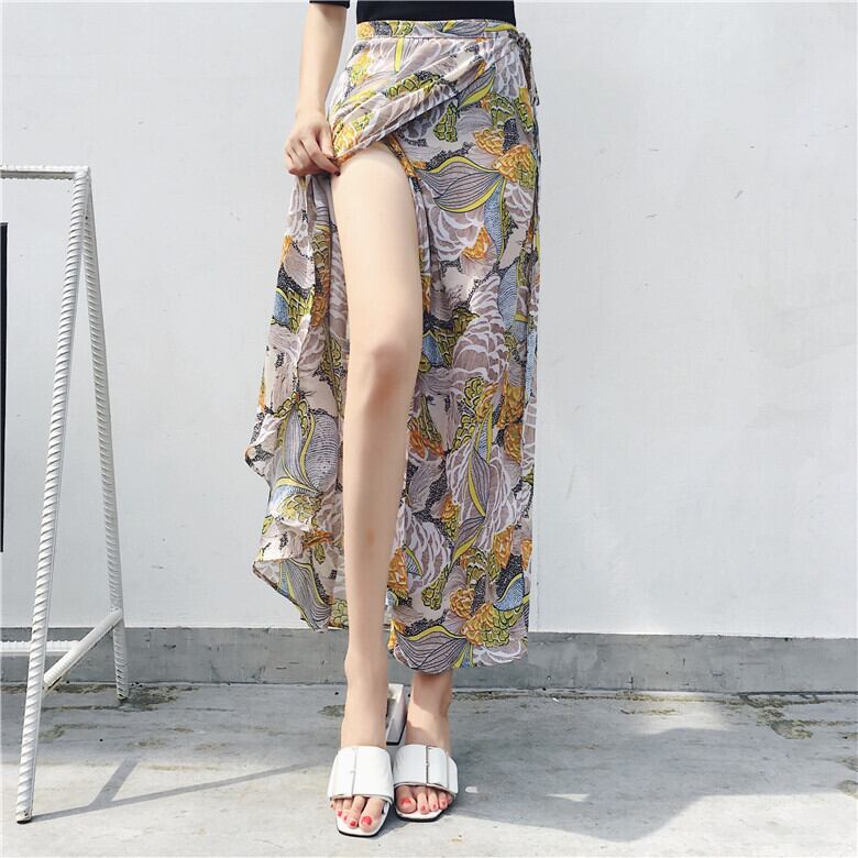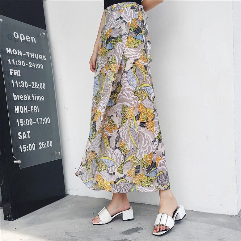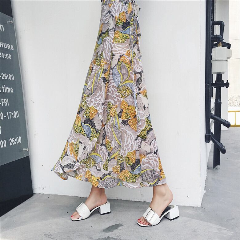 ラップスカート シフォン スリム Aライン フレア ロング 和柄 パイナップル柄 ハイウエスト ボトムス リゾート ビーチ 海 夏 薄手 リネン素材 涼し気 シンプル 女性 レディース