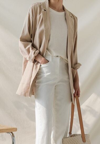 アウター テーラージャケット リネン 大きいサイズ フォーマル 春夏 アプリコット グレー 10代 20代 30代 40代 お出かけ デート シンプル トレンド 大人女子 OL 通勤 オフィス
