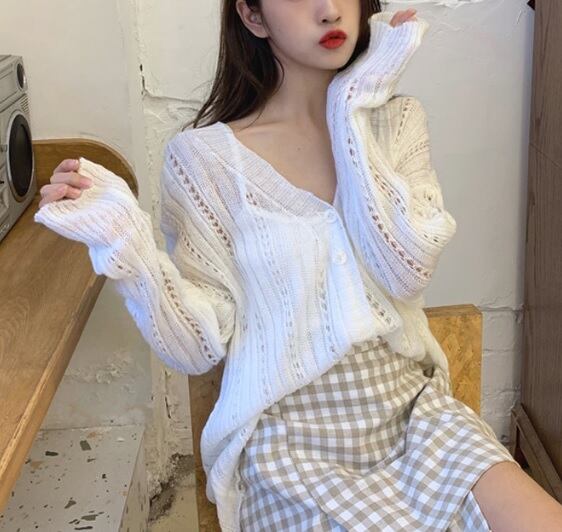 アウター カーディガン ニット Vネック 長袖 カジュアル 春秋 白 グリーン 10代 20代 30代 40代 お出かけ デート シンプル トレンド 大人女子 かわいい 体型カバー キュート 上品