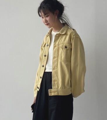 アウター デニムジャケット ミリタリージャケット コットン 襟付き 長袖 カジュアル 春夏 ショート丈 パープル イエロー 10代 20代 30代 40代 お出かけ デート シンプル トレンド 大人女子