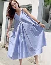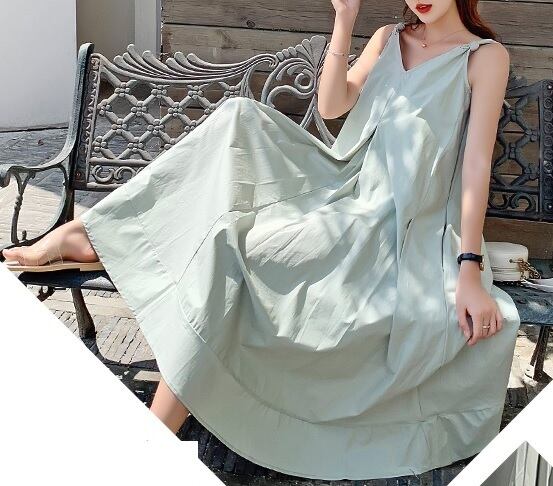 ワンピース ミモレ丈 Vネック ノースリーブ 大きいサイズ ゆったり 大人可愛い 春夏 無地 トレンド 黒 ブルー グリーン 10代 20代 30代 お出かけ デート リゾート バカンス カジュアル