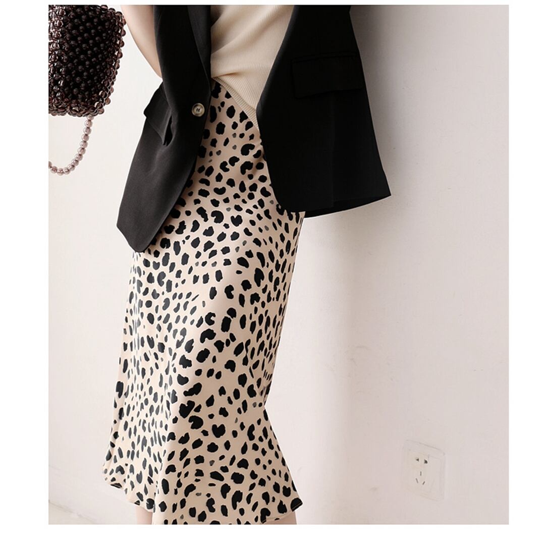 ヒョウ柄 スカート スリム ミディアム丈 膝下 ウエストゴム ストレッチ セクシー 大人 オシャレ アニマル シンプル Aライン ボトムス 春 夏 秋 お出かけ ショッピング レディース サイズ豊富 女性