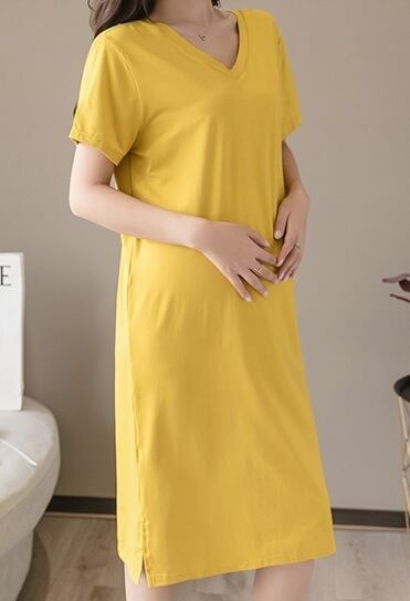 ワンピース Vネック ひざ丈 半袖 大きいサイズ ゆったり スリット Aライン 大人可愛い 春夏 トレンド 黒 イエロー グレージュ 10代 20代 30代 お出かけ デート カジュアル シンプル