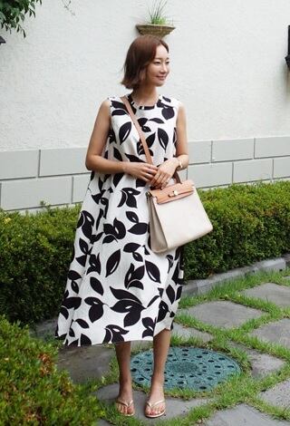 ワンピース シフォン ラウンドネック ミモレ丈 ノースリーブ 大きいサイズ ゆったり Aライン フレア 大人可愛い 春夏 花柄 トレンド 白 10代 20代 30代 お出かけ デート カジュアル キュート 上品