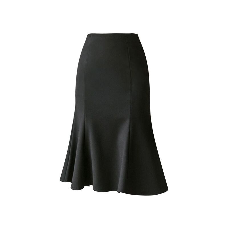膝丈スカート フリル フレア マーメイド フォーマル シンプル 大人可愛い 無地 ウエストゴム タイト スリム ストレッチ ボトムス ハイウエスト 春 夏 秋 参観 お呼ばれ お出かけ ショッピング レディース 女性 サイズ豊富