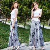 ●鮮やかカラーと花柄が目を惹くシフォンロングスカートです。ベアワンピースとしても活用できる2Way使用!暑い夏にピッタリのアイテムです。