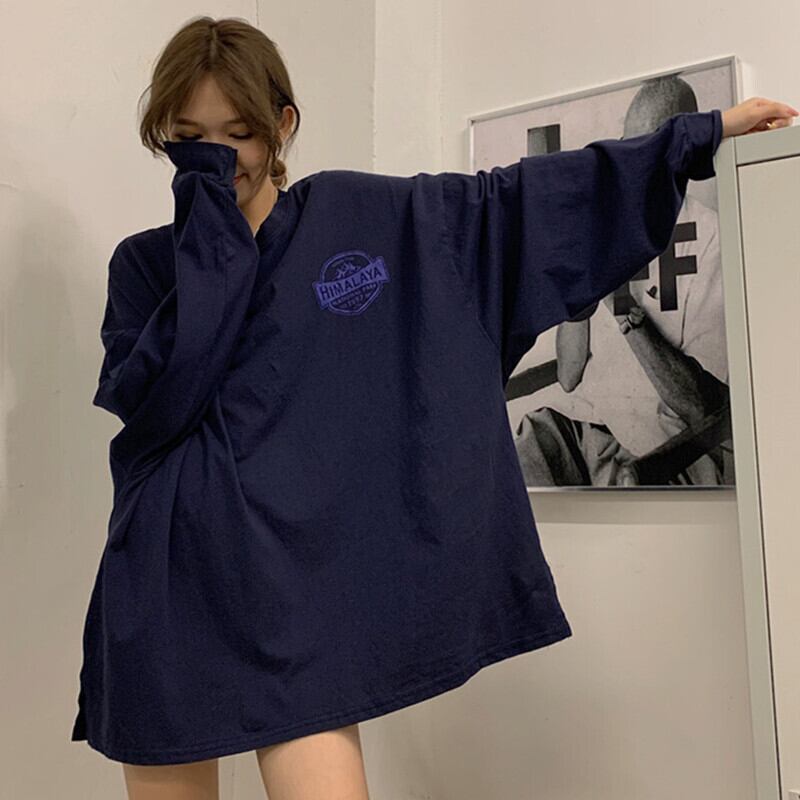 シャツ 長袖 コットン ゆったり 大きめ 体型カバー ラフ カジュアル 部屋着 ルームウエア スポーティー 普段使い 胸元ロゴ バックプリント 無地 シンプル サイドスリット 春 秋 トップス ラウンドネック 女性 レディース