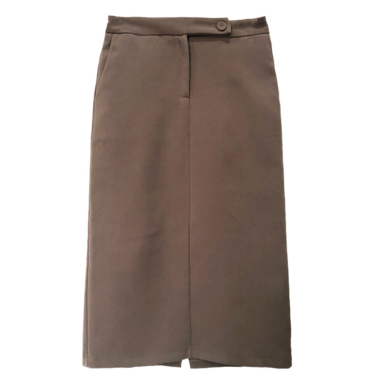 Aライン ロング ミディアム丈 スカート ウエスト ボタン 無地 シック スリム シンプル バックスリット オフィス 大人 秋 冬 ボトムス 女性 レディース