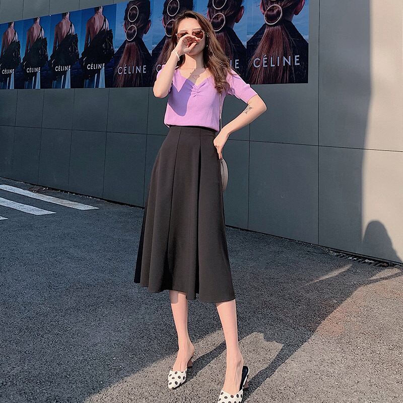 ●シンプルで活用性◎のフレアスカートです。ハイウエストで足長効果アップ!様々なシーンで活躍してくれる万能アイテムです。