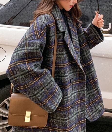 アウター Pコート ピーコート ミディアム丈 グリーン 大きいサイズ ウール 秋冬 チェック柄 長袖 10代 20代 30代 お出かけ デート 通勤 OL 仕事 シンプル トレンド 大人女子 可愛い カジュアル 暖かい