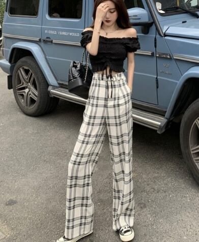 ハイウエストパンツ チノパンツ 美脚 楽 細見え 白 大きいサイズ ゆったり ロング丈 秋 チェック柄 かっこいい 10代 20代 30代 お出かけ デート 着まわし 大人女子 カジュアル シンプル トレンド