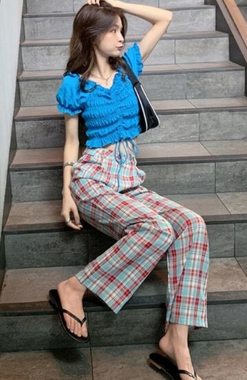 ハイウエストパンツ チノパンツ 美脚 楽 細見え 白 レッド ブルー ゆったり ロング丈 春夏 チェック柄 かっこいい 10代 20代 30代 お出かけ デート 着まわし 大人女子 カジュアル 可愛い トレンド