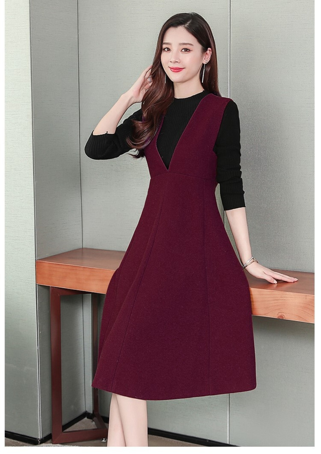 ノースリーブワンピース ミディアム丈 膝丈 Aライン シック レトロ 大人可愛い オシャレ シンプル 無地 Vネック ポケット付 バックファスナー ハイウエスト 上品 秋 冬 大きめサイズ 女性 レディース