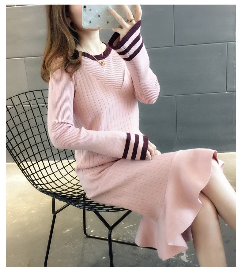 セットアップ ツーピース ニット セーター キャミワンピース スリム ミディアム丈 マーメイド 裾フリル シンプル オシャレ 長袖 パステルカラー 無地 ストレッチ 伸縮性 お出かけ デート 秋 冬 女性 レディース
