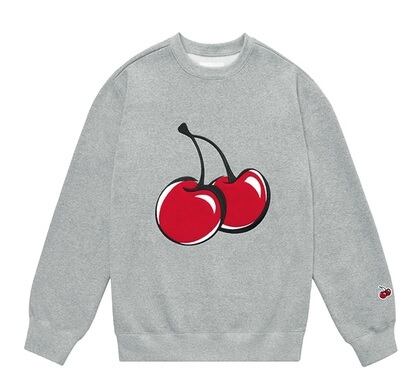 トップス トレーナー プルオーバー おしゃれ カジュアル シンプル ゆったり ミディアム丈 黒 白 グレー ブルー ピンク イエロー マゼンタ 秋冬 長袖 さくらんぼ プリント ラウンドネック 10代 20代 30代 お出かけ デート トレンド 大人女子 可愛い 暖かい