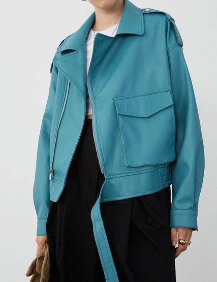 アウター ライダースジャケット ミディアム丈 ブルー PU レザー 秋冬 長袖 大きいサイズ 10代 20代 30代 お出かけ デート シンプル トレンド 大人女子 クール カッコいい カジュアル
