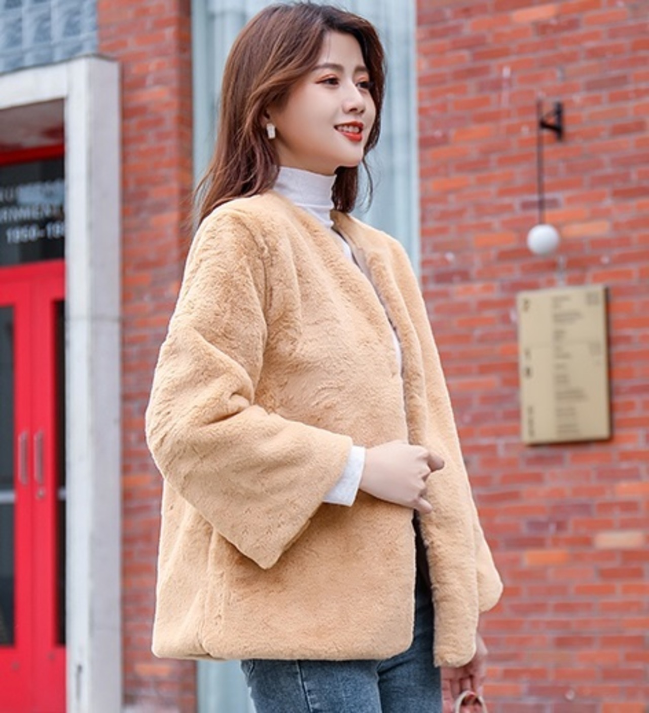アウター ノーカラージャケット ショート丈 キャメル 秋冬 無地 長袖 ラウンドネック 10代 20代 30代 お出かけ デート 通勤 OL 仕事 シンプル トレンド 大人女子 可愛い カジュアル 暖かい ふわもこ