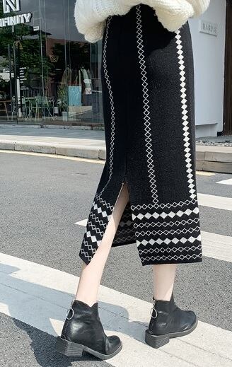 ハイウェストスカート ニット スリット ミモレ丈 黒 秋冬 仕事 可愛い シンプル Hライン 10代 20代 30代 お出かけ デート 上品 きれいめ 清楚 大人女子 OL オフィス トレンド