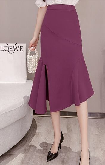 マーメイドスカート ハイウェストスカート ミモレ丈 スリット 無地 黒 イエロー パープル 春夏 仕事 大きいサイズ 可愛い シンプル 人気 Aライン 10代 20代 30代 お出かけ デート 上品 きれいめ 清楚 セクシー フェミニン 大人女子 OL オフィス トレンド