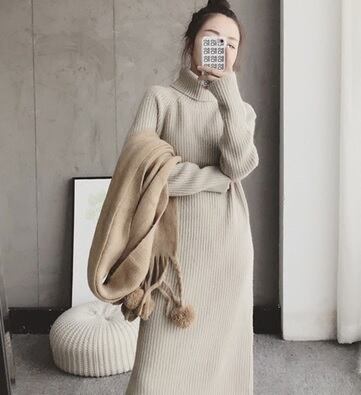 ニットワンピース 暖かい 細見え 秋冬 普段使い ルーム お出かけ デート 黒 ブラウン アプリコット グレー タートルネック 無地 大人 カジュアル 可愛い ゆったり シンプル Aライン 長袖 ミモレ丈 人気 トレンド 10代 20代 30代