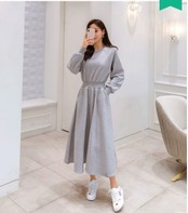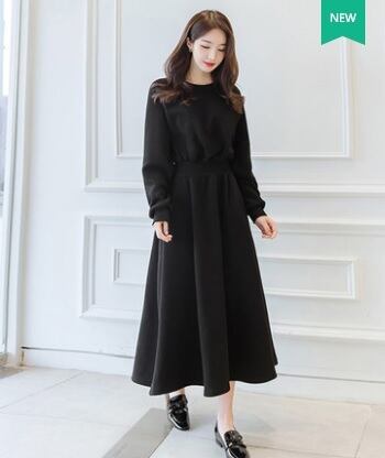 フレアワンピース 暖かい 細見え 綿 秋冬 普段使い ルーム お出かけ デート 黒 ブルー グレー ラウンドネック 無地 大人 カジュアル 可愛い ゆったり シンプル Aライン 長袖 ミモレ丈 人気 トレンド 10代 20代 30代