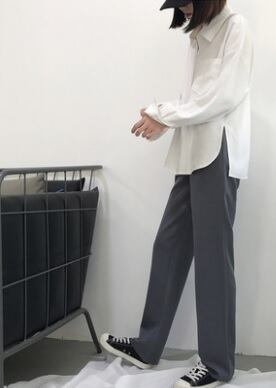 ハイウエストパンツ 美脚 細見え 黒 グレー 無地 ゆったり ロング丈 秋冬 仕事 大きめ おしゃれ 楽 かっこいい 10代 20代 30代 お出かけ デート 着まわし 大人女子 フォーマル OL オフィス シンプル トレンド 人気