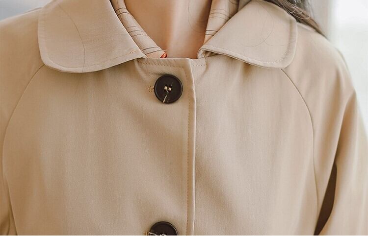 スプリングコートアウタートレンチコート無地シンプルウエストリボン丸襟ポケット付きミディアム丈膝丈お出かけ通勤通学袖ボタンガーリーフロントボタン春女性レディース