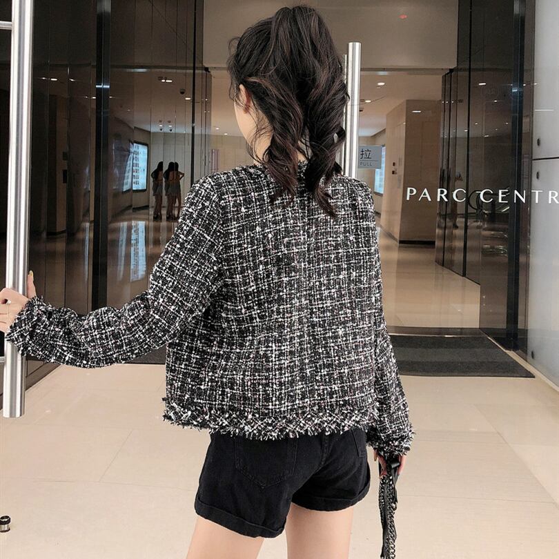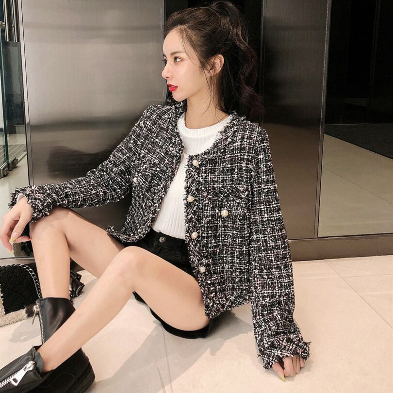 ツイードジャケット ショート丈 ラウンドネック パールボタン ほつれ加工 アウター 胸ポケット フロントボタン ホワイト ブラック 秋 冬 女性 レディース