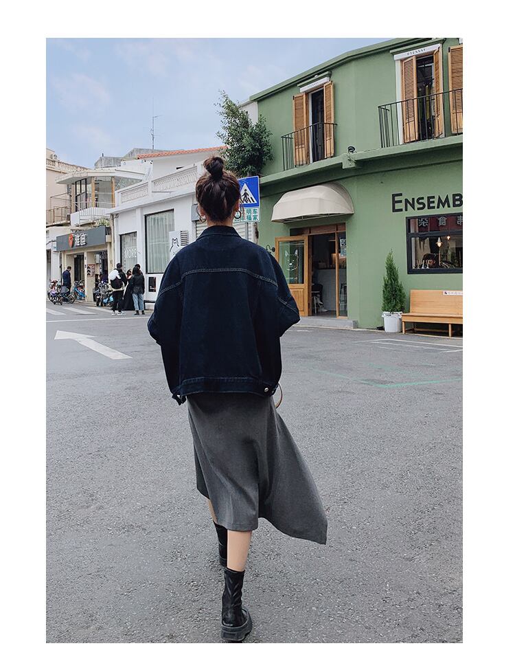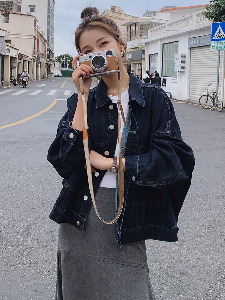 ●シンプルなデニムジャケットです。ゆったりと着れるオーバーサイズ!ダークブルーがフェイスラインの引き締め効果をアップさせてくれます。活用性◎のアイテムです。
