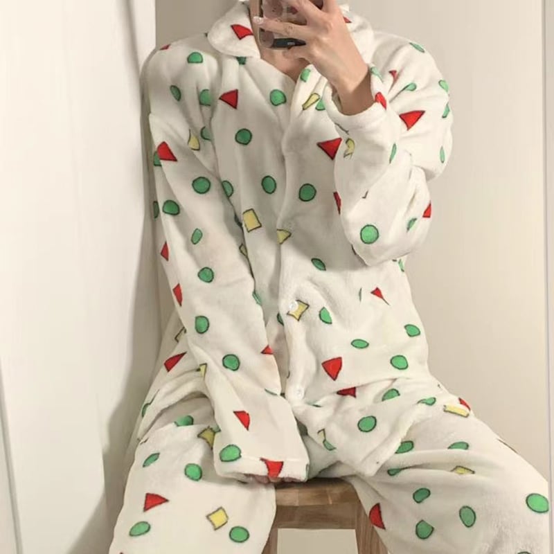 パジャマ ルームウェア ナイトウェア フワモコ 暖か フロントボタン 前開き 長袖 ウエストゴム 秋 冬 幾何学模様 レトロ柄 パステルカラー ゆったり リラックス おうち時間 女性 レディース