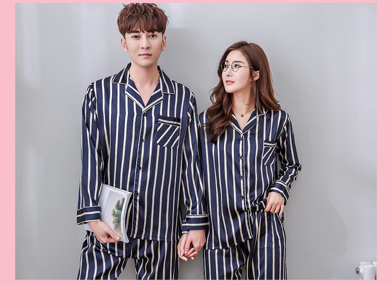 ●ストライプ柄のナイトウェアです。光沢のあるサテン地で高級感アップ!大人シンプルなデザインです。