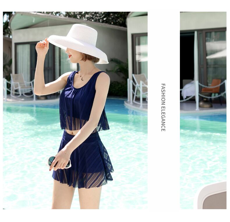 タンキニ 水着 ビキニ 体型カバー お腹カバー 太ももカバー お尻カバー フレアスカート ボーイレッグ インナーショーツ パッド付 無地 Uネック メッシュ生地 シースルー 透け感 セパレート 海水浴 夏 プール ビーチ 大人可愛い 女性 レディース