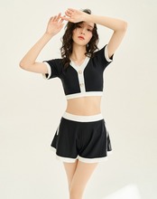 ●半袖タイプのセパレート水着です。お尻や二の腕をしっかりとカバーしてくれるデザイン!クールなカラーでスポーティーな印象です。