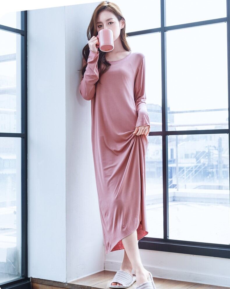 ルームウエア Tシャツワンピース ナイトウエア 長袖 ロング プルオーバー ラウンドネック 鎖骨見せ ゆったり リラックス シンプル ラフ 無地 伸縮性 ストレッチ 体型カバー 春 秋 女性 レディース