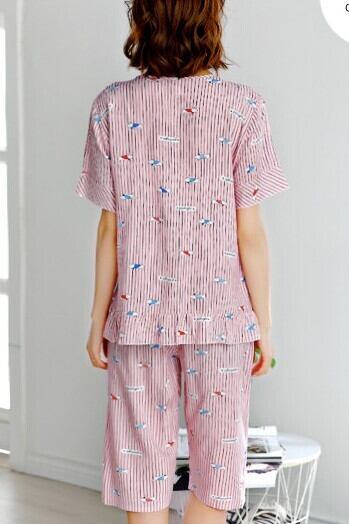●ストライプ柄のルームウエアです。半袖と長袖の2タイプ。全体にプリントされたドッグ柄が可愛いデザインです。