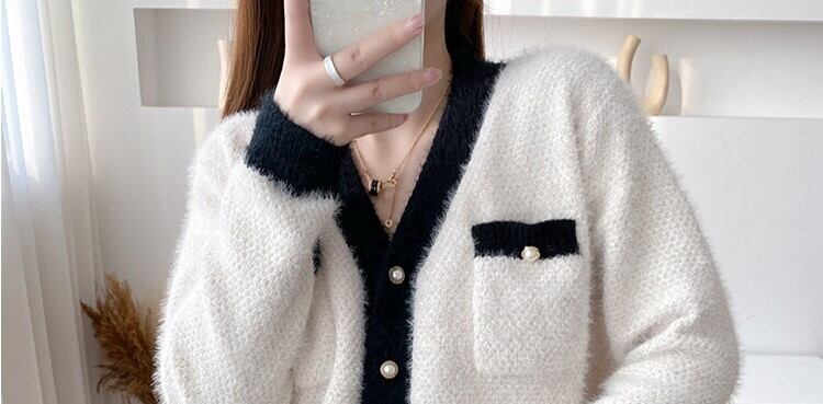 ルームウェア ナイトウェア パジャマ セーター風 ロールアップ リブ フロントボタン 前開き 長袖 Vネック パールボタン 胸ポケット 無地 ラメ金糸 スリム クール 大人 オシャレ ウエストゴム 秋 冬 女性 レディース