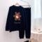 ルームウェア ナイトウェア パジャマ プルオーバー ラウンドネック 長袖 クマ 軽量 暖か パイル生地 ソフトタッチ 伸縮性 ストレッチ ウエストゴム ゆったり リラックス 秋 冬 女性 レディース