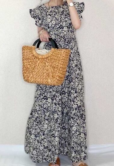 ロングワンピース 細見え 春夏 普段使い ルーム お出かけ デート リゾート 黒 大きめ 花柄 綿 大人 清楚 可愛い 上品 フリル ゆったり マキシ丈 人気 トレンド 10代 20代 30代