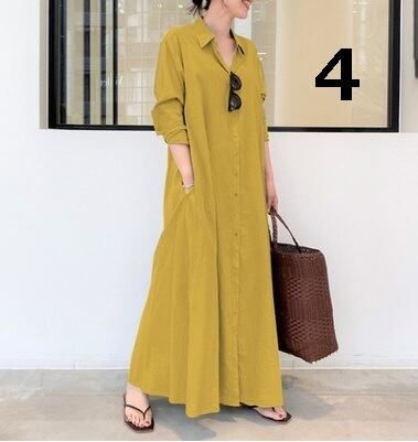 ロングワンピース シャツワンピース 細見え 夏 普段使い お出かけ デート 黒 グリーン ネイビー ブラウン グレー ブルー レッド ベージュ イエロー 綿 襟付き 大きめ 無地 花柄 大人 レトロ 可愛い シンプル 長袖 半袖 人気 トレンド 10代 20代 30代
